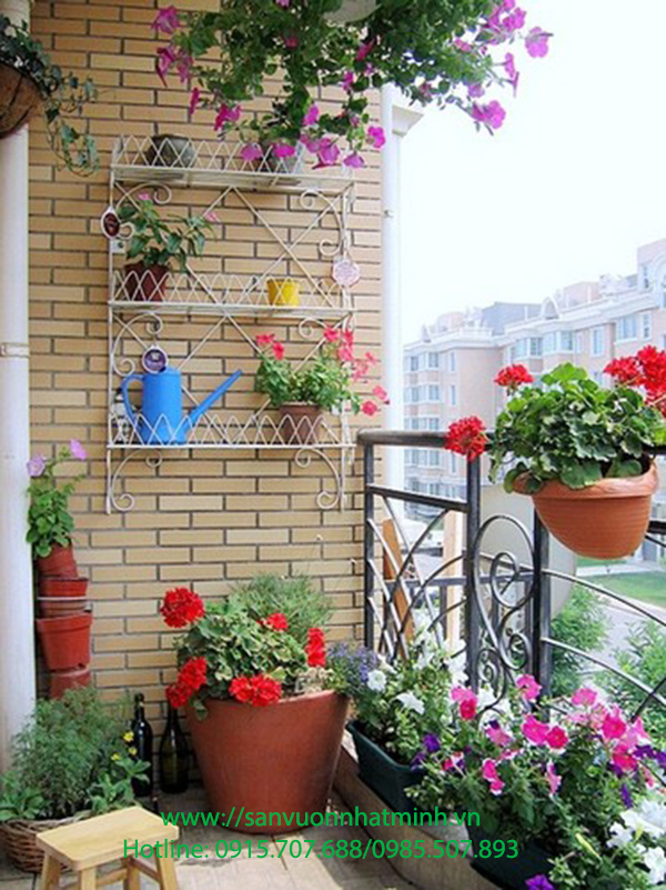 Ban công đầy những chậu hoa tươi thắm