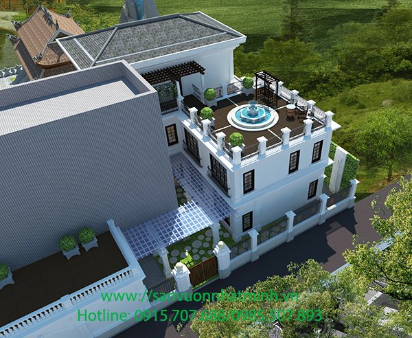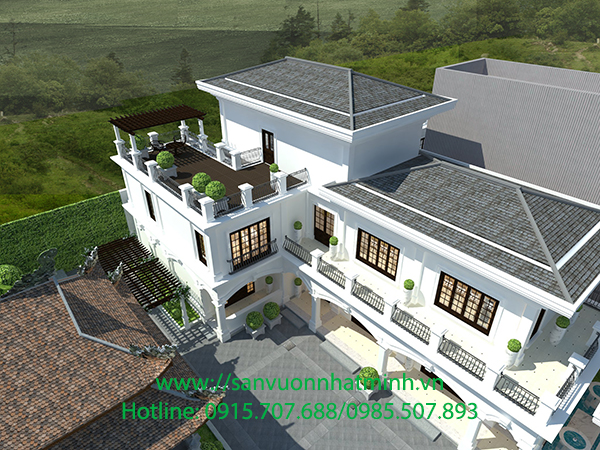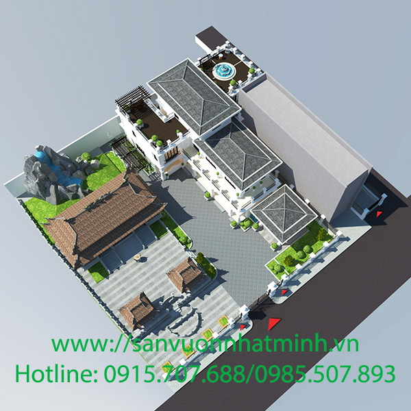 Thiết kế khuôn viên cây xanh, tiểu cảnh bao quanh căn biệt thự gần 700m tại Tp Thái Nguyên