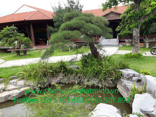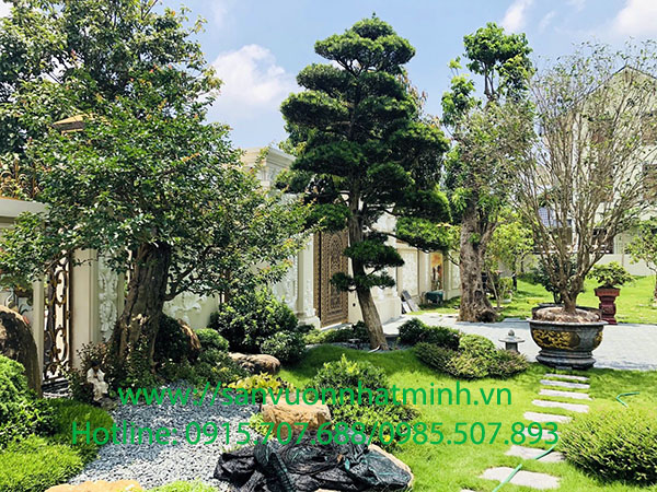 Thiết kế khuôn viên cây xanh, tiểu cảnh bao quanh căn biệt thự gần 700m...